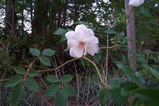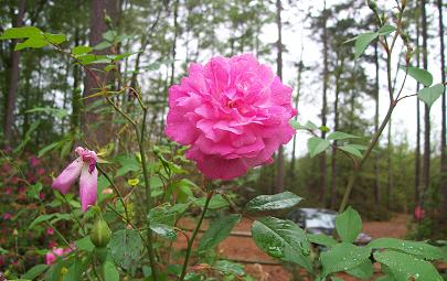 The fragrance is quite different from European roses. It is generally peppery or spicy. As flowers age, they darken in color, unlike the European roses which bleach as they age. Examples: 'Parson's Pink China,' 'Monthly Rose,' or 'Old Blush China' has loosely double mid-pink flowers, generally in clusters of 3-5. 'Semperflorens' or 'Slater's Crimson China' introduced to Europe around 1792. The flowers are loosely double, deep red. This is the parent of most of the early dark red roses. Tea Large (6’ and over) shrubs with thin, twiggy wood. The canes are smooth and have a polished look, and are often red-bronze when they are new. Large, hooked prickles run the length of the canes. Foliage is shiny and deep green. New growth is bronzed. Flowers are large, often produced in clusters, on fragile stems. Flower colors include: white, pink, yellow and a few reds. Often, colors are mixed or blended, and are generally in the pastel shades. Flower colors often intensify as they age. Bloom is continual. Fragrance is fruity with a tea-like undertone--not the usual rose scent, at all. Examples: 'Parks' Yellow Tea-scented China' - brought to England by John Parks in 1824. Numerous pale yellow, double flowers with an occasional pink flush. 'Devoniensis' was introduced in 1838 and has pale pink, double flowers. Upright shrubs with thorny canes. Foliage is matte green. Blossoms are large with short stems. The leaves are often so close to the blooms that they appear to “frame” them. Flower colors include: white, pink to deep crimson. Fragrance is sweet and rosy. Their bloom cycle repeats and they were among the first roses to be cold-hardy, repeat, and have true scarlet flowers. Example: 'Portland Rose' has bright red, semi-double flowers with a lovely scent. Noisette None of the Noisettes are very cold-hardy, but they all repeat strongly (bloom almost constantly). Large shrubs. Foliage is matte green. Blossoms are small and produced in clusters of pale pink to white. Noisette were later back-crossed to Tea roses to produce the tall climbing forms with very large clusters of flowers. These later flower colors include: white, pink to yellow. Fragrance is spicy Tea Rose. Example: 'Blush Noisette' has lovely clusters of pale pink flowers with a scent reminiscent of cloves. Bourbon Large, open shrubs with large thorns and long canes. Foliage is deep green. Flower colors include: white, pink to deep pink. Fragrance is strong, old rose. They are generally winter-hardy. Examples: 'Souvenir de la Malmaison' is a large flowered, double rose in pale pink. 'Bourbon Queen,' or 'Reine des Iles Bourbon' has lovely double flowers in medium pink with paler edges. Hybrid Perpetual This was probably the most popular class of rose in the 19th century, after 1840. Very large shrubs with thorny canes. Flowers are generally carried at the tips of the canes. Flower colors include: white, pink to deep red, and purple. Fragrance is sweet and rosy. Their bloom cycle repeats with a heavy resurgence of bloom in the fall. Cold hardy. Example: 'General Jacqueminot,' or 'La Brillante' has large double flowers in deep red, with a good scent. Hybrid Tea Please note that once you start with Hybrid Tea and some of the following classes of roses, it becomes more and more difficult to give an accurate description because there is so much variation between the cultivars. Generally, upright shrubs with thorny canes. Foliage is generally medium to dark green and slightly shiny. Blossoms are large, classic Hybrid Tea form with long stems and a high, pointed center. Generally only attractive in the half-open stage. This is in direct contrast to the rest of the roses we have mentioned, which are most beautiful in all stages and most particularly at the fully opened stage. (Okay, you’ve caught me--I am not a fan of this class...) Flower colors include all colors except blue and black. Fragrance varies wildly, but many have none.. Their bloom cycle repeats. Example: 'La France' has double blooms in pink which are paler inside. It has a heavier scent than most Teas. "Mrs Oakley Fisher' is a single rose (5 petals) with large coppery yellow flowers. Polyantha Low growing shrubs with thin, twiggy canes. Foliage is shiny, deep green. Blossoms are small and form in large clusters. Flower colors include: white, pink to deep crimson. (No yellow.) Fragrance is generally non-existent. Their bloom cycle repeats. Example: 'Marie Pavie' has lovely double blooms in pale cream with a touch of pink. Rugosa Medium shrubs with thorny canes that will quickly colonize an area via runners. Foliage is crinkled, leathery green (Rugosus is Latin for wrinkled). Flower colors include: white, pink to deep crimson and yellow. Rosy fragrance. Their bloom cycle repeats reliably and they do not need to be deadheaded to get them to repeat. Produce large hips (or heps) with high levels of vitamin ‘C’ and are excellent for jams, jellies and tea. Example: 'Rugosa Rubra' has very large single (5 petal) flowers in rich deep crimson. Rambler/Climbers Example: Rosa filipes 'Kiftsgate' - there is a speciman at Kiftsgate Court, Gloucestershire that has climbed into a large beech tree 30'. The 1" white flowers are born in heads nearly 18" across and in full bloom this is utterly spectacular. As as if this wasn't enough, it has a lovely scent. Climbers have been produced either by sport (accidentally) or by deliberate breeding from almost every other class of rose mentioned. They are generally less exuberant than Ramblers, and have the characteristics of the variety from which they were produced. They may be remontant or not. Roses may be considered climbers if they produce canes 8’ tall on up. Shrub/English Again, there is so much variety in the Shrubs and English classes, that it is nearly impossible to define them, except very broadly. They are shrubs, ranging from 3’ to 8’ in height. Flower colors include every color except black and blue. Fragrance varies from none to 