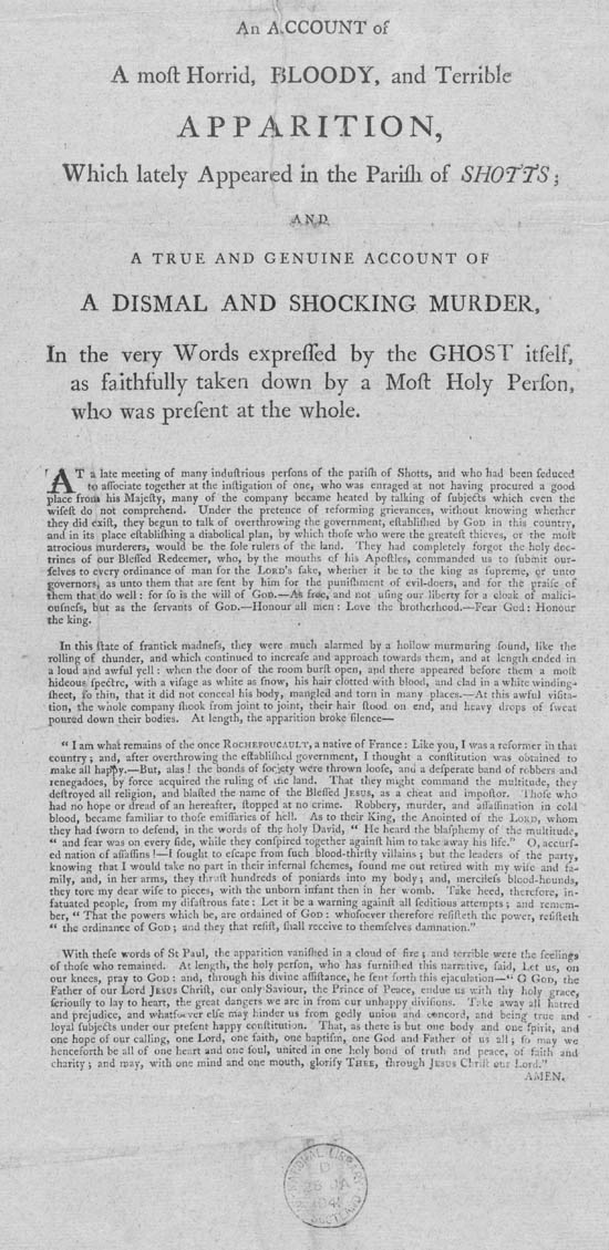 DISMAL AND SHOCKING MURDER, In the very Words expressed by the GHOST itself,